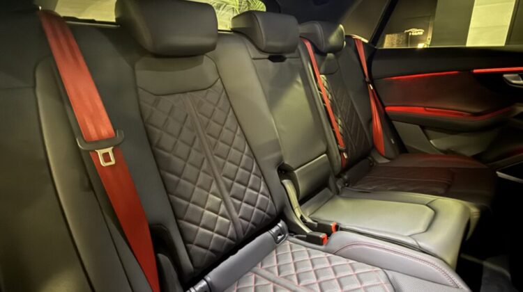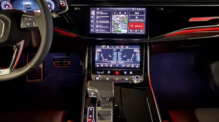 -Bancos dianteiros desportivos RS com regulação elétrica e memória,em couro Valcona com logotipo SLine, com costuras vermelho